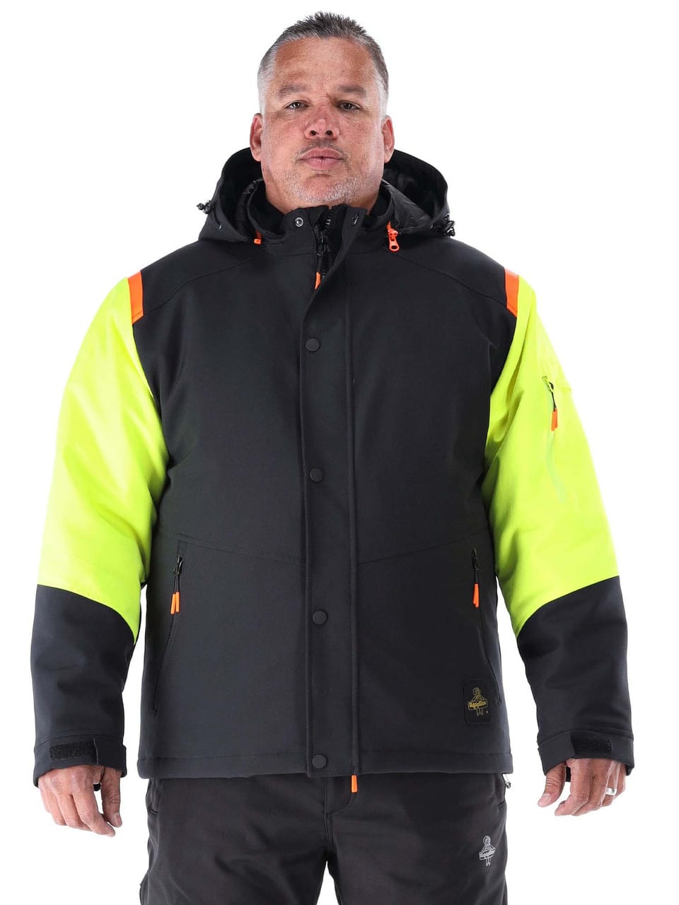 This thermal work coat is equipped for versatility in any cold conditions. A water-repellent finish, stand-up collar with a removable hood and adjustable cuffs keep you ready to handle the unpredictable nature of your work. HiVis accents at shoulder and sleeves help you stand out on the job. When you rely on warmth to be productive, 120g of polyester insulation and 2 zippered hand-warmer pockets are sure to help get the job done.