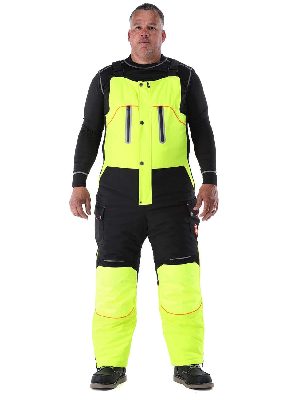 - With over 500 grams of insulating power, these snow bibs for men will protect you from freezing weather. Rain, moisture and condensation don't stand a chance when you're covered by these insulated work overalls. You're protected with a water-repellent outershell that locks in warmth and keeps you dry. Tricot laminated silver lining keeps the warm in while the wind-tight outershell and the durable YKK® zipper with storm flap keeps the cold out.